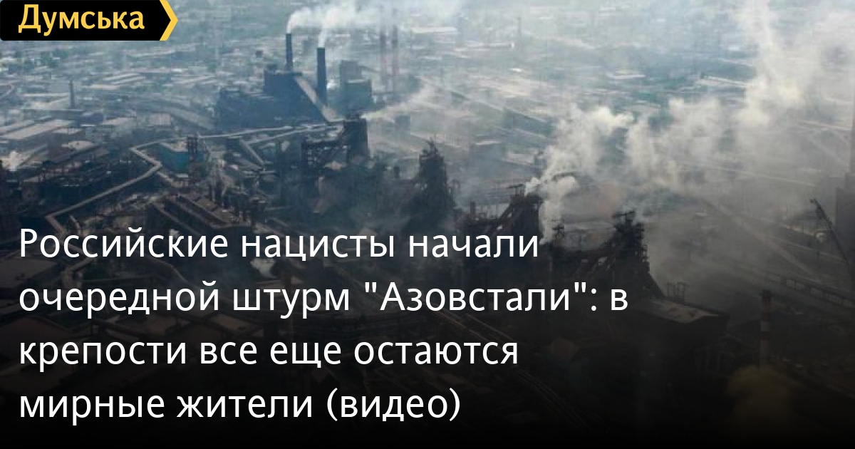 Российские оккупационные войска начали очередной штурм завода «Азовсталь» в Мариуполе, где укрываются защитники города и мирные жители.