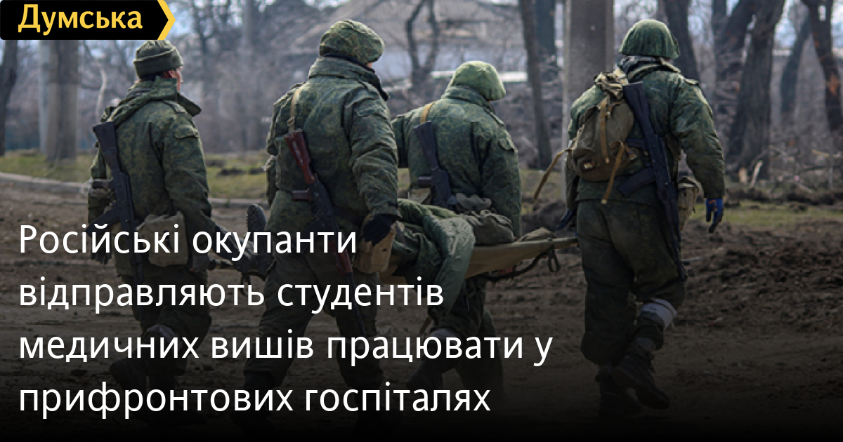 Тому окупанти залучають студентів медичних вишів до роботи у прифронтових медичних установах, повідомляє Генштаб Збройних сил України.