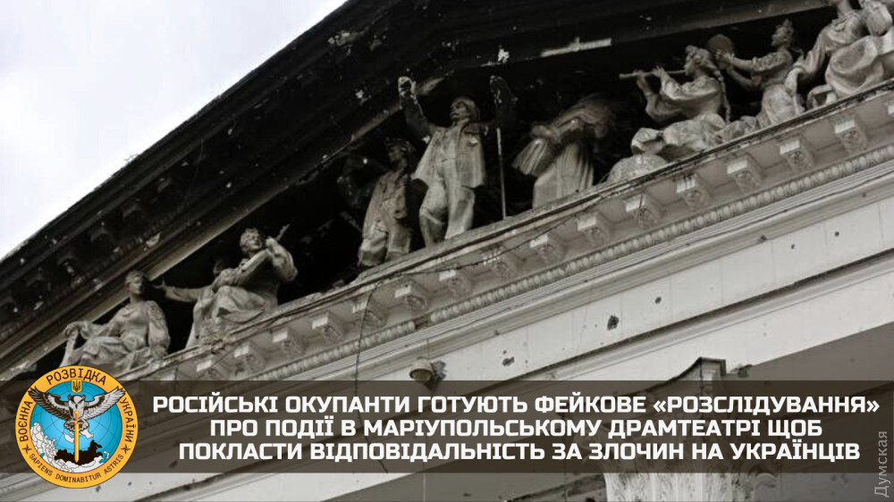 Як стало відомо представникам ГУР, зараз у Маріуполі працюють кілька знімальних груп російських телеканалів, які готують постановочні сюжети з «доказами» того, що вибух у театрі нібито стався не через російські авіабомби, а через «велику кількість вибухівки», яку там нібито складували українські війська.