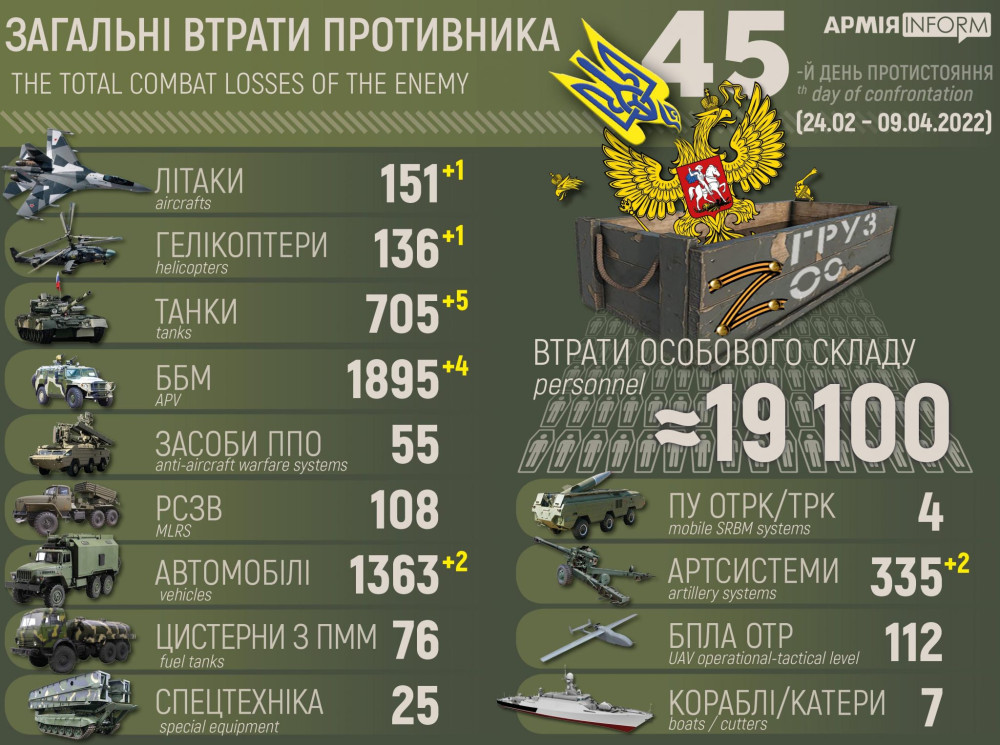 Кроме того, общие боевые потери противника с 24 февраля составили: