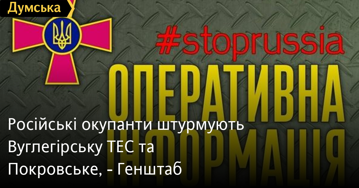 Втратами для ворога завершились штурмові дії для ворога у напрямках Доломітне – Новолуганське та Стряпівка – Соледар. Дезорганізовані підрозділи окупантів наші воїни відігнали назад. Противник продовжує спроби штурму у напрямку Вуглегірської ТЕС та поблизу Покровського, бойові дії тривають.