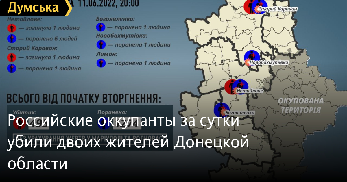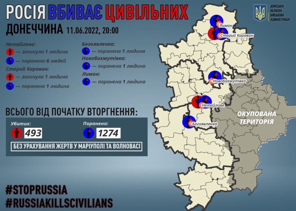 Как сообщил глава Донецкой ОВА Павел Кириленко, один мирный житель погиб в Старом Караване и один в Нетайловом.