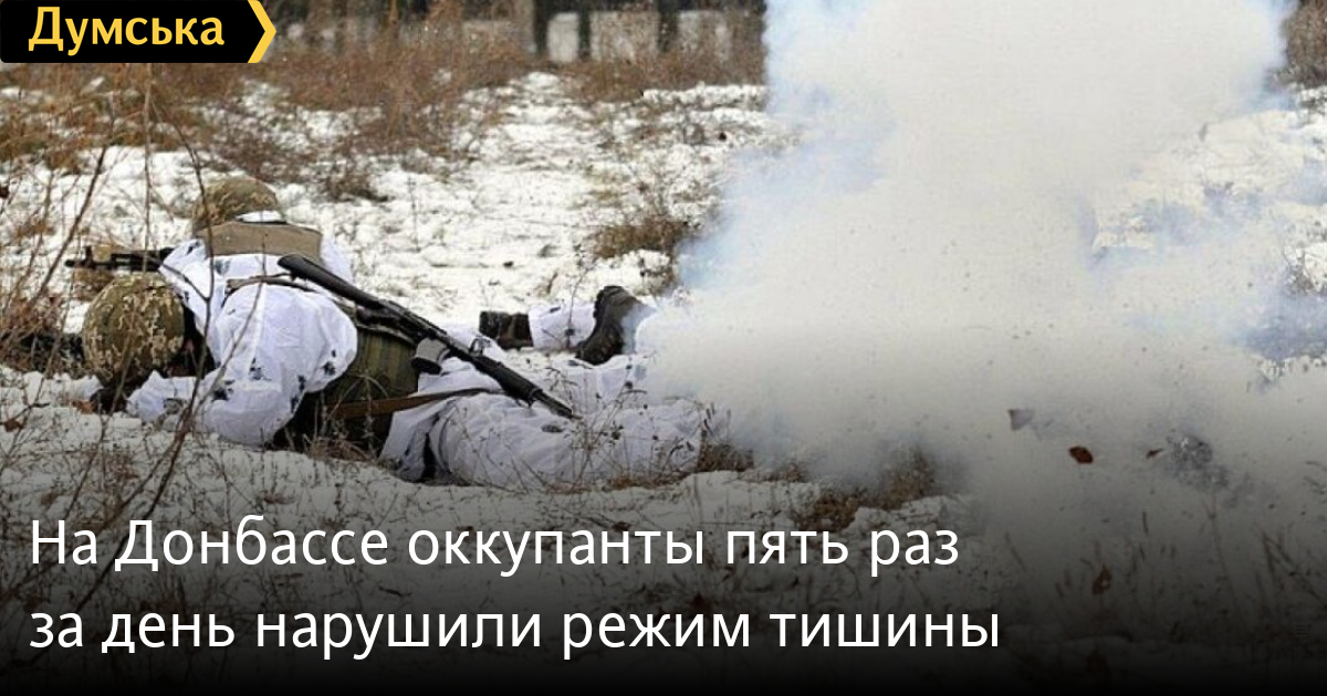 С сегодняшнего утра на Донбассе вооруженные формирования Российской Федерации пять раз нарушили режим прекращения огня, в том числе дважды примененили запрещенные Минскими договоренностями вооружения.