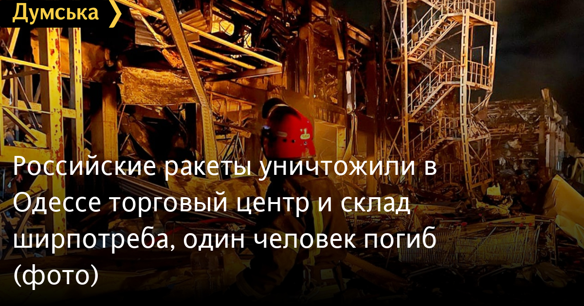 Торговый центр и склад готовой продукции широкого потребления уничтожили российские ракеты вечером 9 мая в Одессе.