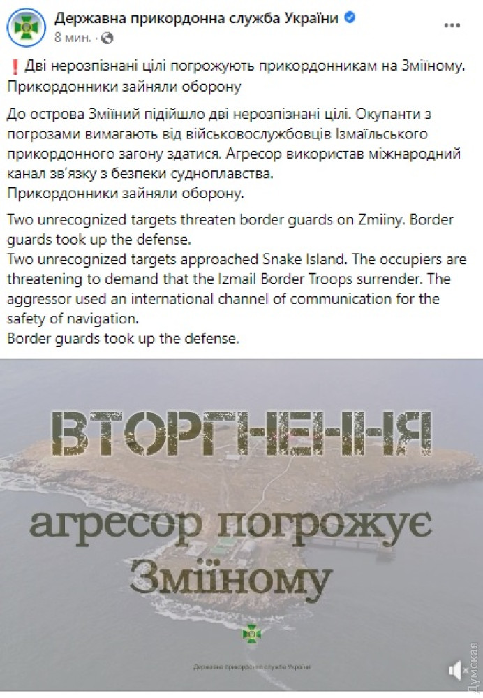 «Пограничники заняли оборону Оккупанты с угрозами требуют от военнослужащих Измаильского погранотряда сдаться. Агрессор использовал международный канал связи по безопасности судоходства», — отмечается в сообщении.