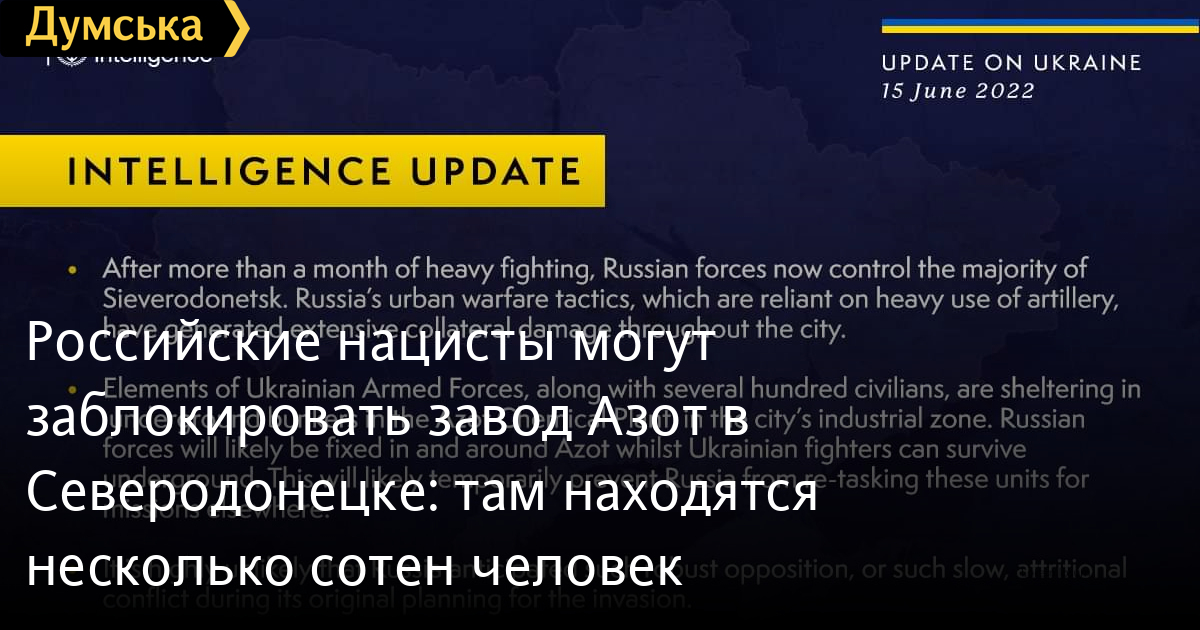 Аналитики британской разведки сообщают, что сейчас в подземных бункерах предприятия в промзоне города укрываются подразделения Вооруженных сил Украины и несколько сотен мирных жителей.