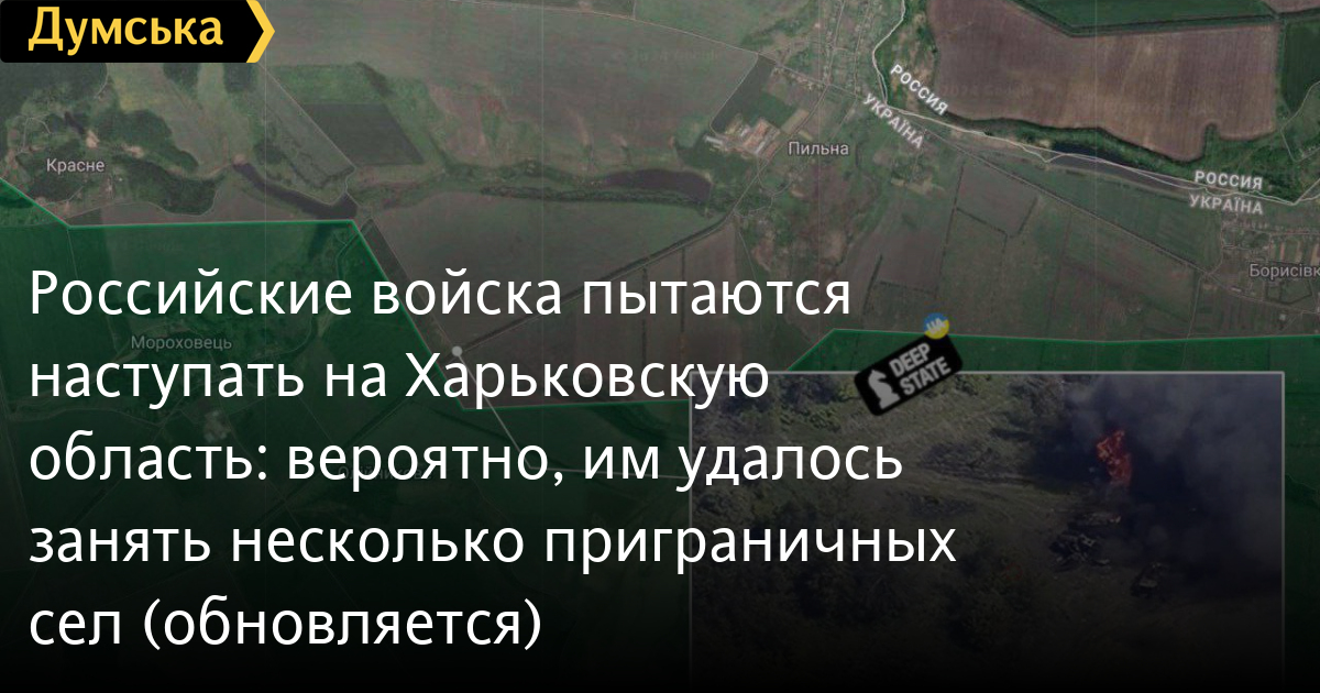 Російські війська намагаються наступати на Харківську область: ймовірно, їм вдалося зайняти кілька прикордонних сіл (оновлюється)Російські нацисти роблять спроби прорватися через кордон у Харківській області. У Міністерстві оборони України повідомили, що окупанти діють під прикриттям бронетехніки, почастішали артилерійські обстріли, ворожа авіація скидає на прикордоння кориговані авіабомби. «Станом на зараз ці атаки відбиті, тривають бої різної інтенсивності. Для посилення оборони на цій ділянці фронту направлено резервні підрозділи. Збройні Сили України продовжують стримувати наступ ворога», — заявили в Міноборони. Водночас, сервіс DeepState зазначив, що частина Харківського та Вовчанського районів перейшла під контроль противника. Це прикордонні села Стрілеча, Пильна, Борисівка в Харківському районі (загальна площа близько 40 кв. км) і село Плетенівка на околицях Вовчанська. У соцмережах з'являються фото зі знищеними російськими солдатами і спаленими артилерією колонами ворожої техніки в прикордонні Харківської області. Голова Вовчанської міської військової адміністрації Тамаз Гамбарашвілі оголосив евакуацію цивільних із міста та прилеглих сіл. Зазначимо, раніше президент України Володимир Зеленський заявив, що вороги планують «розширити наступ» і на нас чекає новий етап війни. Керівник Центру протидії дезінформації Ради національної безпеки і оборони Андрій Коваленко заявляв, що «вороги мають ресурс для активізації дій у прикордонні Харківської області». Вороже угруповання на кордоні з Харківською, Сумською та Чернігівською областями оцінюють приблизно в 50 тисяч солдатів та офіцерів. ОНОВЛЕНО О 14:14. Голова Харківської обласної військової адміністрації Андрій Синєгубов заявив, що просування у противника немає: «Збройні сили України впевнено тримають позиції: не втрачено жодного метра. Угруповання противника не становить загрози для Харкова, його сил вистачає тільки для провокацій на північному напрямку». ОНОВЛЕНО О 14:40. Президент України, верховний головнокомандувач Володимир Зеленський заявив, що росія почала наступ на Харківську область і зараз там тривають жорстокі бої. «За інформацією, яка надійшла о 8:30 ранку — ворожі війська були зупинені вогнем», — заявив голова держави. Він зазначив, що противник має ресурси для того, щоб концентрувати війська на цьому напрямку. Водночас він сказав, що Сили оборони знали про підготовку ворожого наступу і готувалися до нього. СМЕРТЬ РОСІЙСЬКИМ ОКУПАНТАМ! Помітили помилку? Виділяйте слова з помилкою та натискайте control-enter |