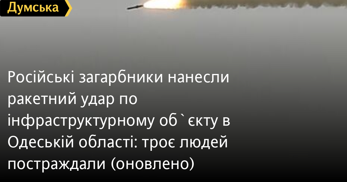 ОНОВЛЕНО о 10:15. В Одеській районній адміністрації повідомили, що в результаті удару постраждали троє людей.