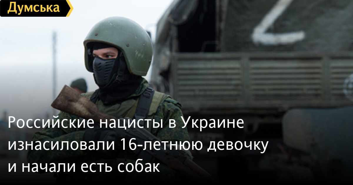 Российские нацисты в Украине изнасиловали 16-летнюю девочку и начали есть собакСлужба безопасности Украины перехватывает новые, все более дикие, телефонные разговоры российских оккупантов со своими родственниками. Так, в опубликованной аудиозаписи нацист рассказывает своей жене, что его сослуживцы-танкисты втроем изнасиловали 16-летнюю девочку. Другой солдат рассказывает родственнику, что вместе с сослуживцами съел алабая. Объясняет, что сухпайки у них еще есть, но, мол, захотелось мяса, а всех гусей в округе они уже переловили. СМЕРТЬ РОСІЙСЬКИМ ОКУПАНТАМ! Помітили помилку? Виділяйте слова з помилкою та натискайте control-enter |