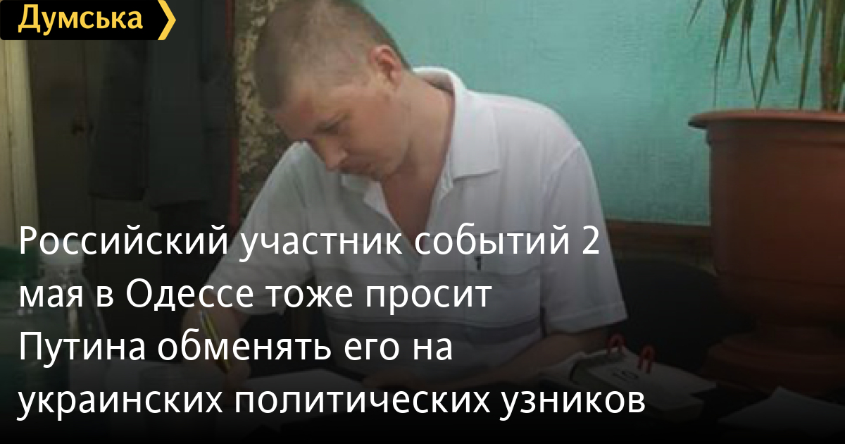 Россиянин Евгений Мефедов, который принимал активное участие в пророссийском мятеже 2 мая 2014 года в Одессе, тоже написал письмо на имя Путина с просьбой обменять его на украинских политических узников, томящихся в тюрьмах РФ.