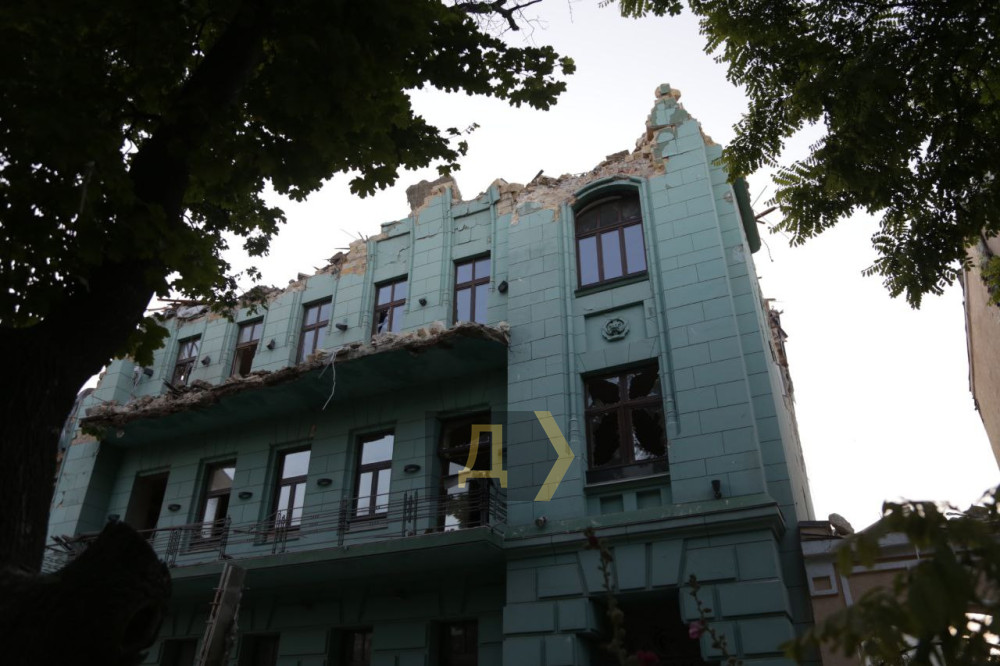 ОНОВЛЕНО О 08:13. Одна з ворожих ракет прилетіла в будинок на Військовому узвозі, поруч із Сабанеєвим мостом, — сильно постраждала пам'ятка архітектури, яка розташована поруч, — особняк графа Толстого, в якому розташовується Будинок вчених.