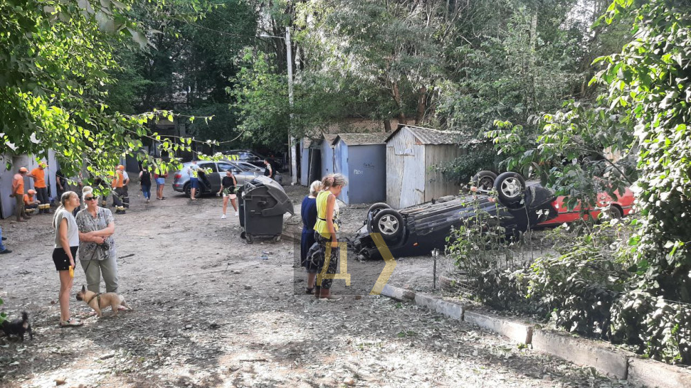 ОНОВЛЕНО О 08:49. Ще одна ракета вибухнула у дворі багатоповерхівки на Балківській вулиці. Пошкоджено кілька житлових будинків, гаражі, машини.