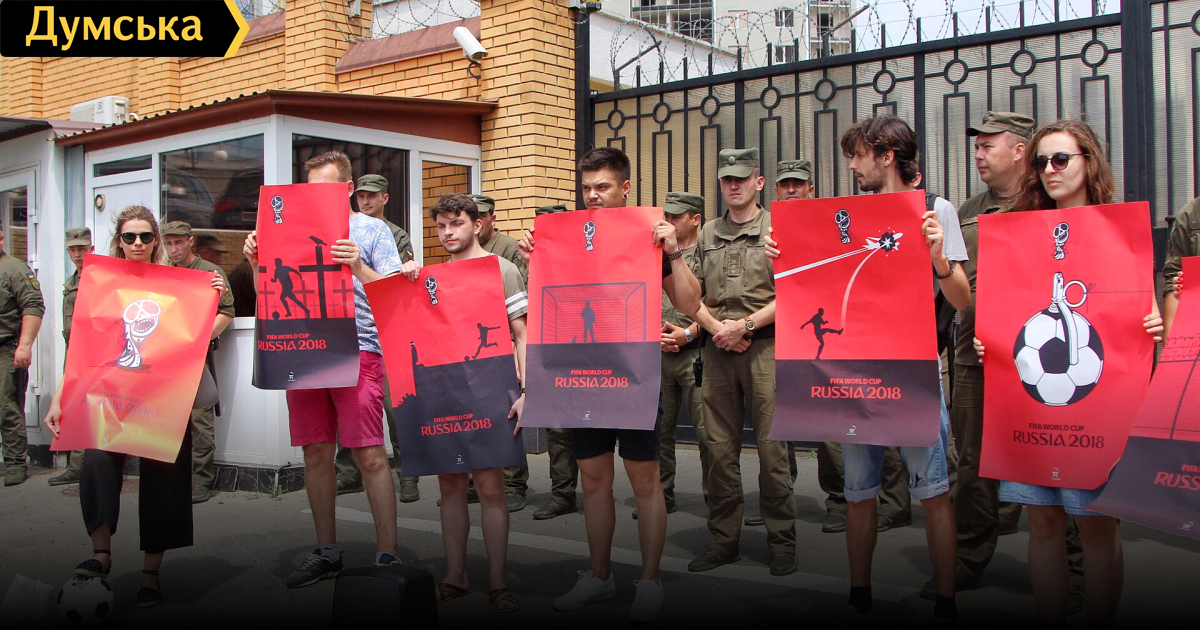 Акция с требованием освободить политических узников Кремля состоялась сегодня под стенами российского консульства в Одессе. Примерно 20 участников патриотических организаций провели пикет диппредставительства с плакатами-карикатурами на тему чемпионата мира по футболу, который проходит в эти дни в России. По словам организаторов пикета — представителей одесского отделения «Автомайдана», мировое сообщество должно было изначально игнорировать чемпионат, так как он проводится в стране, не соблюдающей международные законы и общечеловеческие нормы морали. «Страна-агрессор удерживает в заложниках наших граждан, обвинив их в терроризме и силой навязав свое гражданство, — рассказал представитель «Автомайдана» Юрий Батыр. — Мы сегодня пришли, чтобы поддержать их. Сегодня пошел 34 день голодовки Сенцова, а мы даже не знаем, что с ним, нашего омбудсмена к нему не пустили». По словам Батыра, этой акцией они хотят поддержать политзаключенных и напомнить международному сообществу, что Россия — страна-террорист. «Этот праздник футбола не должен проходить в стране, которая систематически игнорирует человеческие ценности». В свою очередь, фанаты «Черноморца», принявшие участие в акции, рассказали, что не имеют ничего против чемпионата и смотреть его надо, однако не забывая, в какой стране он проходит. «Сегодняшняя акция не направлена на то, чтобы люди не смотрели футбол, — считает фанат Александр, — пусть каждый болеет за свою сборную, но не забывает, что этот футбол проходит на крови наших ребят, защищающих нашу страну от агрессора». В итоге участники акции облили футбольные мячи красной жидкостью и символически забили голы в «ворота Российской Федерации», перебросив спортивные снаряды через забор дипломатической миссии. Фото — Александр Гиманов СМЕРТЬ РОСІЙСЬКИМ ОКУПАНТАМ! Помітили помилку? Виділяйте слова з помилкою та натискайте control-enter |