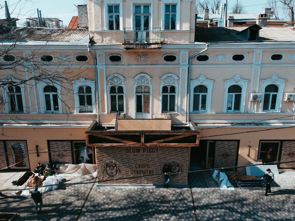 Старинный двухэтажный дом №12 по Гаванной дополнили стеклянной пристройкой и современными окнами. Там разместится ресторан Slow Piggy, принадлежащий народному депутату от «Слуги народа» Алексею Леонову.