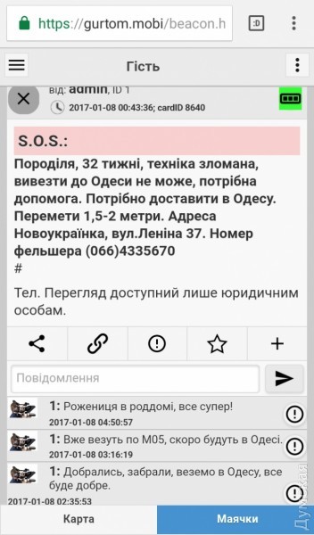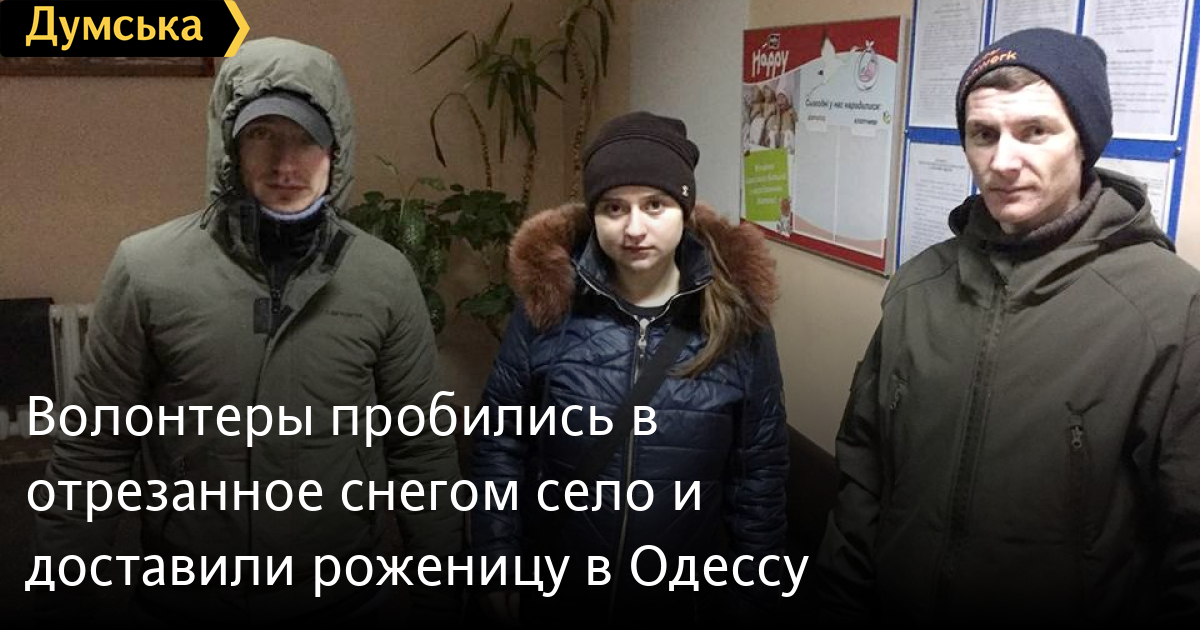 «После просьбы врача на помощь выехали три внедорожника с активистами «Автомайдана», клуба внедорожной езды «4х4» и «Самообороны»», — рассказал участник событий, лидер одесского «Автомайдана» Евгений Резвушкин. Напомним, он имеет большой опыт «снежного волонтерства» — два года назад в подобной ситуации Евгений успешно принял роды в собственной машине.