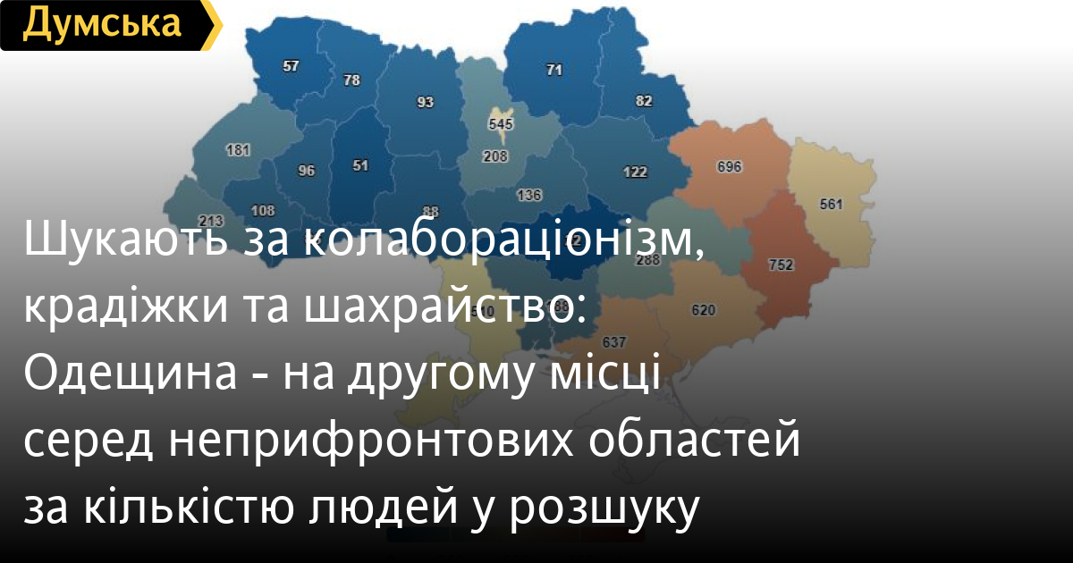 В Одеській області розшукують 510 осіб. Це другий показник серед не прифронтових регіонів. Лідирує — Київ.