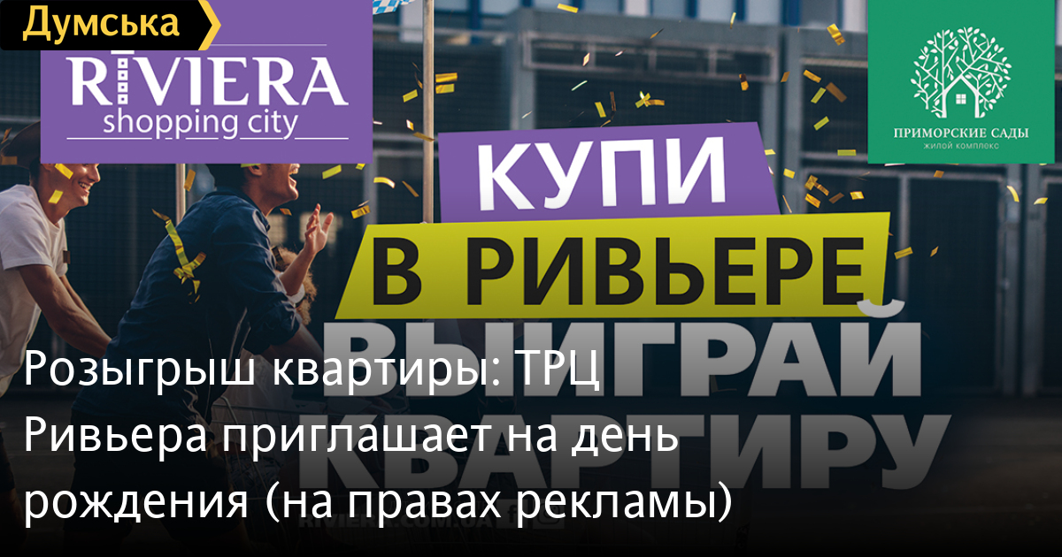 Правила проведения лотереи в лототроне «Купи в Ривьере — выиграй квартиру»: * Участвуют только чеки магазинов ТРЦ «Ривьера» * Участвуют только чеки на сумму от 1499 гривен одним чеком * В анкете регистрации указывается ФИО, телефон, магазин и сумма покупки* Победитель обязан будет дать публичное интервью со своими данными, чтобы все понимали, что все честно * Победитель подпишет соглашение о запрете продажи квартиры в течение 14 месяцев после получения документов* В соглашении будет разрешение на посещение победителя через год, чтобы узнать, как дела на новой квартире * Розыгрыш пройдет в 18:00 в круглом атриуме ТРЦ «Ривьера» на сцене * Личное присутствие тех, кто участвует в розыгрыше, обязательно * Розыгрыш призового фонда происходит при использовании алгоритма, основанного на принципе случайного определения выигрышей * Все победители будут оглашены и опубликованы результаты * Идеальный тайминг розыгрыша — в пределах одного часа, за время которого разыгрывается 15 призов, включая главный * Лототрон — прозрачный * Чеки достают дети * Ведущий должен быть в перчатках * Заказчик мероприятия: ТРЦ «Ривьера» * Организатор розыгрыша: РК БРО * Призовой фонд розыгрыша формируется за счет средств организатора* Факт участия в розыгрыше подразумевает, что все участники соглашаются с настоящими правилами.