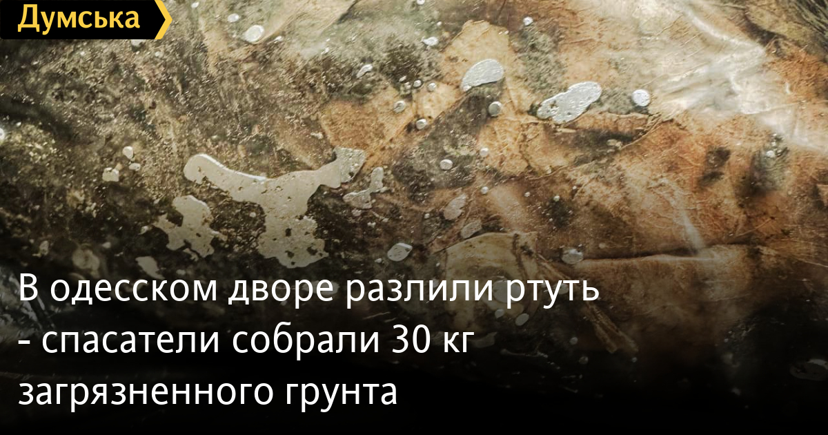 В одеському дворі розлили ртуть — рятувальники зібрали 30 кг забрудненого ґрунтуПонад 30 кг забрудненого ртуттю ґрунту зібрали у дворі житлового будинку в Одесі. Краплі, схожі на ртуть, виявили мешканці двору в Приморському районі та викликали рятувальників, повідомили в обласному управлінні ДСНС. Підрозділи хімічного та біологічного захисту обстежили 10 квадратних метрів території та зібрали понад 30 кг забрудненого ґрунту. Місце обробили розчином хлорного заліза. Помітили помилку? Виділяйте слова з помилкою та натискайте control-enter |