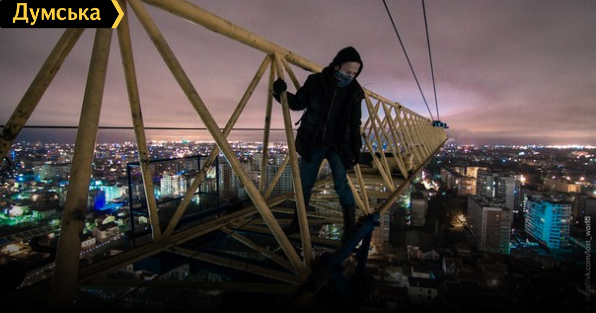 Одесский руфер (любитель лазания на крыши и другие высокие места) Евгений Лата взобрался на самый высокий строительный кран Города, который работает между Генуэзской и Тенистой, на территории бывшей турбазы имени Молодцова-Бадаева. Высота сооружения — 120 метров!