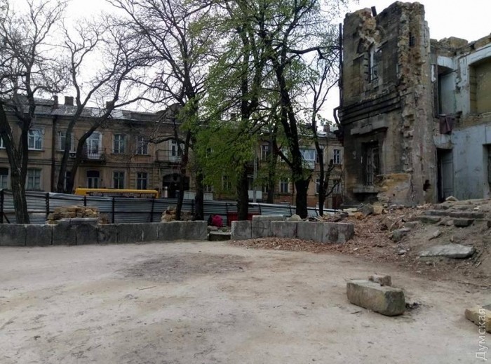 Неизвестные продолжают растаскивать по камешку то, что осталось от здания Русского технического общества на Княжеской улице. Как передает корреспондент «Думской», установленный вокруг руин забор плохо защищает памятник архитектуры. Более того, несколько секций ограды тоже исчезли. На территории лежат частично сложенные в штабеля ракушечниковые блоки и мешки с обломками. Там же находятся разные сомнительные личности, похожие на лиц без определенного места жительства.