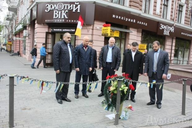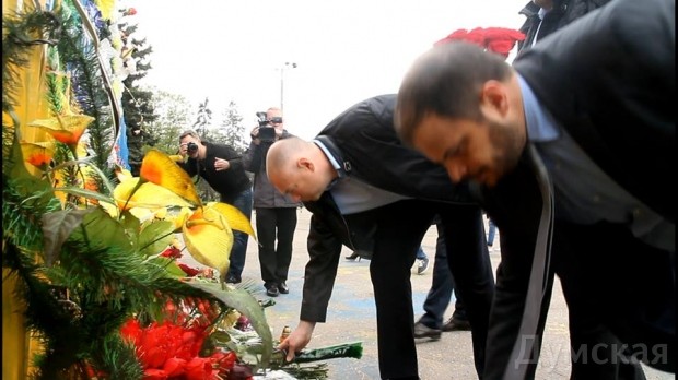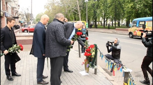 Председатель Одесской облгосадминистрации Игорь Палица, глава облсовета Михаил Шмушкович, мэр города Геннадий Труханов, начальник облУВД Иван Катеринчук и шеф регионального УСБУ Сергей Батраков почтили память жертв трагедии 2 мая 2014 года.