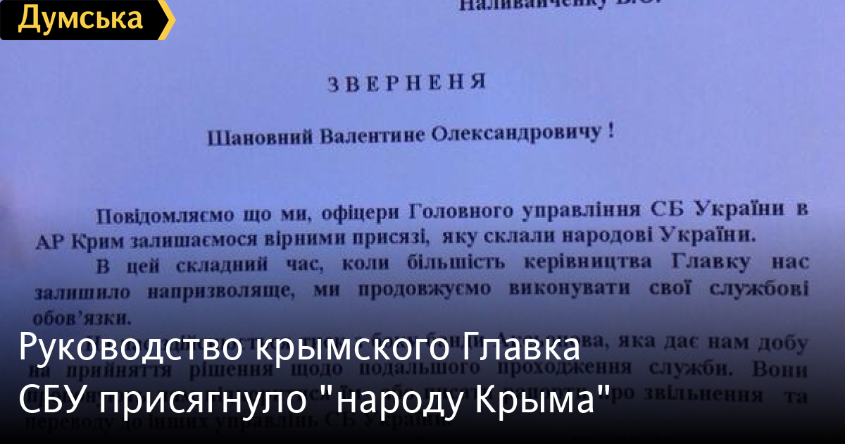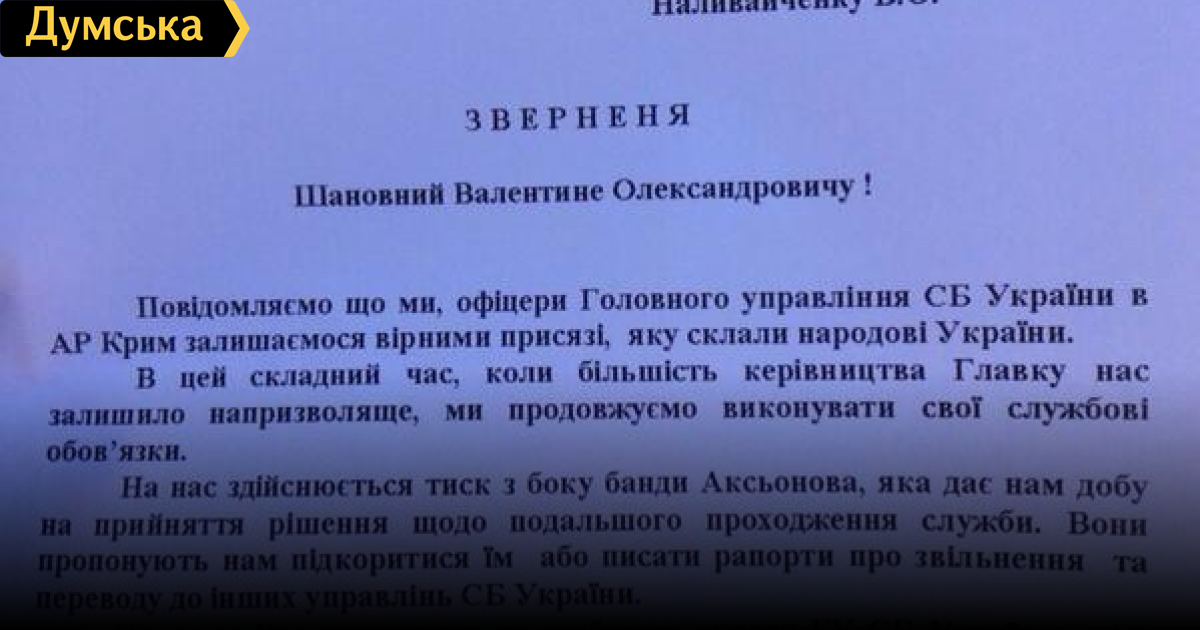 Между тем, большая часть личного состава Главка осталась верной украинской присяге. Они направили открытое письмо главе СБУ Валентину Наливайченко с просьбой отдать хоть какой-то приказ.