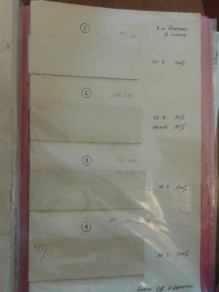 В этом документе проектанты оставили данные, согласно которым мы обязаны проводить покраску фасада. И все работы, которые проводились на портиках театра, выполнялись строго по этому паспорту. В документе четко прописано, что основными цветами портика должны быть белый и золотой. При чем, с качеством краски 100%, без разбавлений. Когда мы посмотрели на портики – увидели, что ни белого, ни золотого на фасаде совсем нет, все покрашено кремовым цветом, в котором белый составлял только 50%, т.е. покрашено было разбавленной краской, что не соответствует Паспорту. Цвета красок для проведения отделочных работ на фасадах театра в соответствии с «Паспортом окраски фасадов портиков театра».