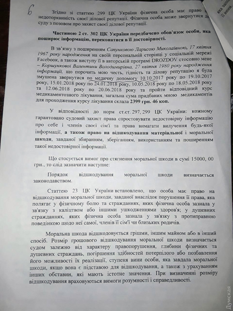 «Думаю, иски против меня появились с подачи Зои Дмитрук, именно поэтому ее фамилия фигурирует в обоих исках, — говорит Лариса Сапункова. — Если они считают, что я их оклеветала, то почему ждали целый год и не подавали в суд, а сделали это после того, как комиссия нашла нарушения, и стал вопрос о том, как Дмитрук не находила этих нарушений».