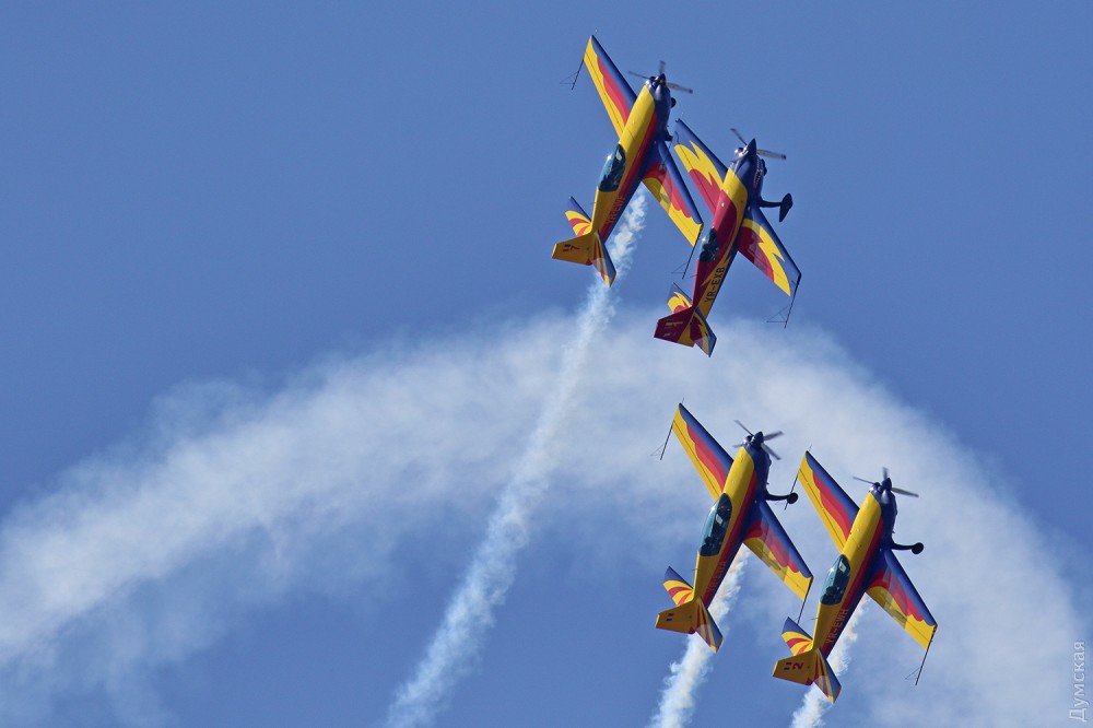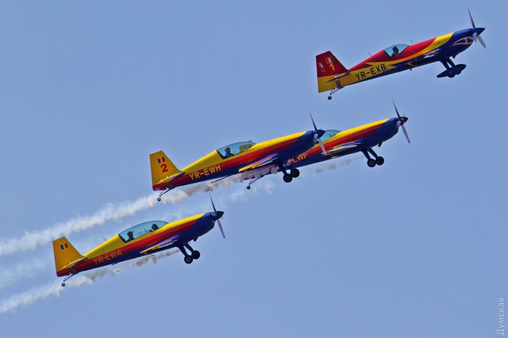 В самом шоу участвовало несколько пилотажных групп из Румынии. На этот раз «Румынский аэроклуб» выставил три группы на разных типах самолетов. Пилоты на чешских самолетах ZLIN 142 показали очень опасный встречный пилотаж. Пятерка пилотажных EXTRA 300 демонстрировала отличную слетанность в группе и нарисовала в небе огромный смайлик. Тройка советских Як-52 (правда, румынской сборки) устроила учебный воздушный бой. По легенде, пара истребителей ВВС Румынии вступила в схватку с американцем, причем и румыны, и янки несли камуфляж своих военно-воздушных сил времен Второй мировой войны. Победили, конечно, румыны, о чем свидетельствовал красно-желто-синий дым румынского триколора, оставляемый за самолетами после боя.
