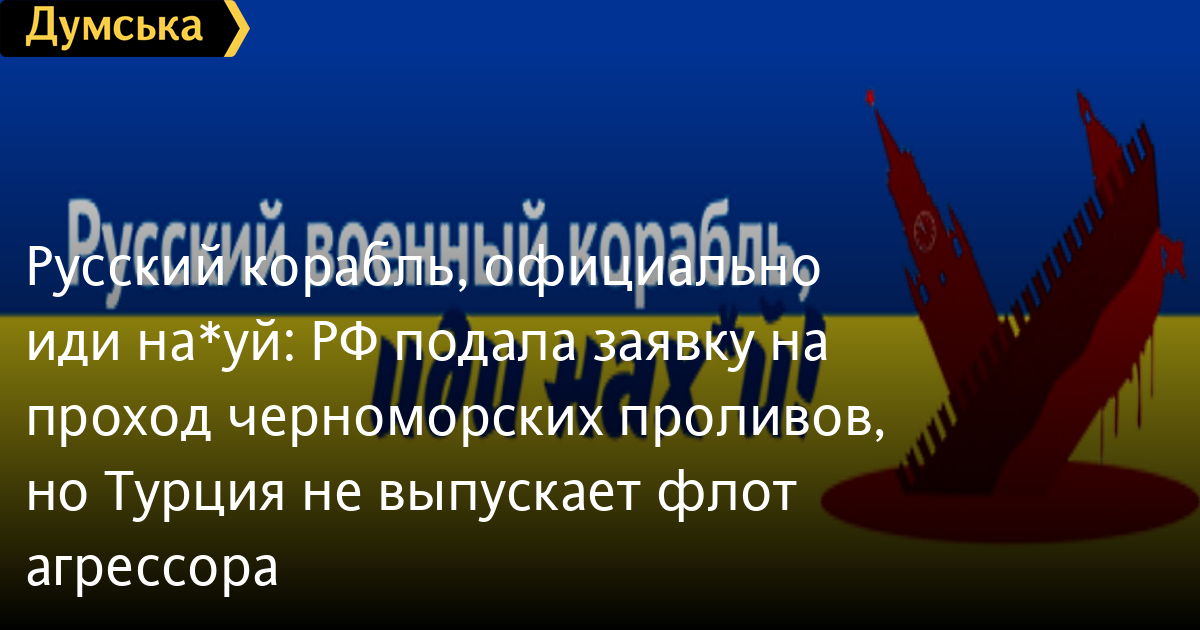Заявку на проход четырех кораблей через проливы Босфор и Дарданеллы из Черного в Средиземное море подала вчера страна-агрессор РФ.