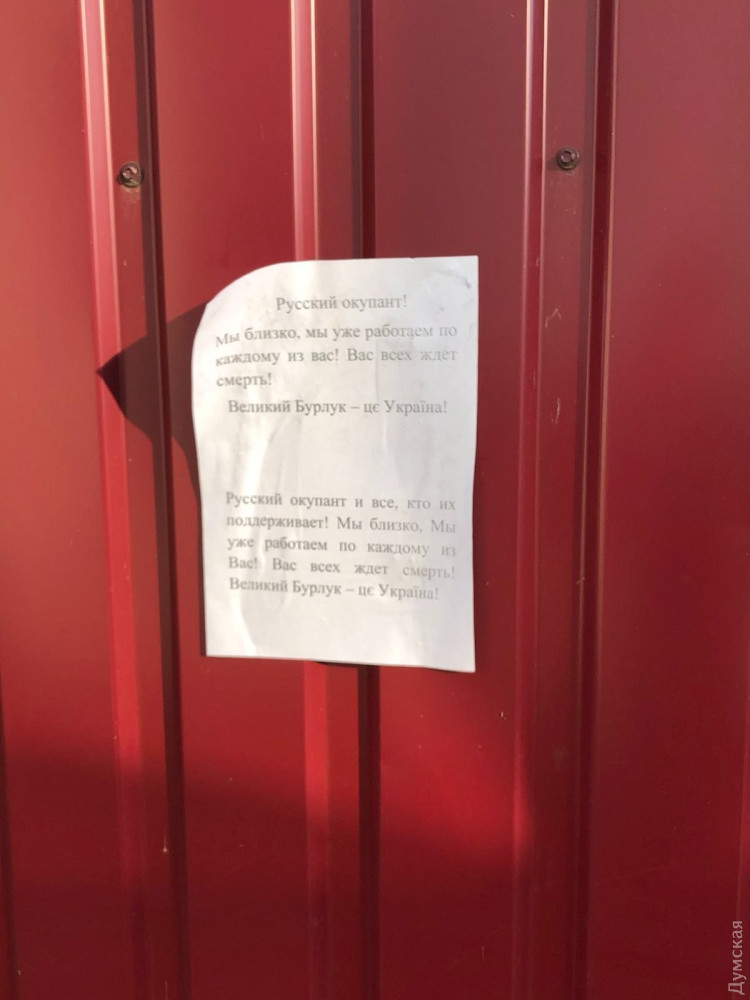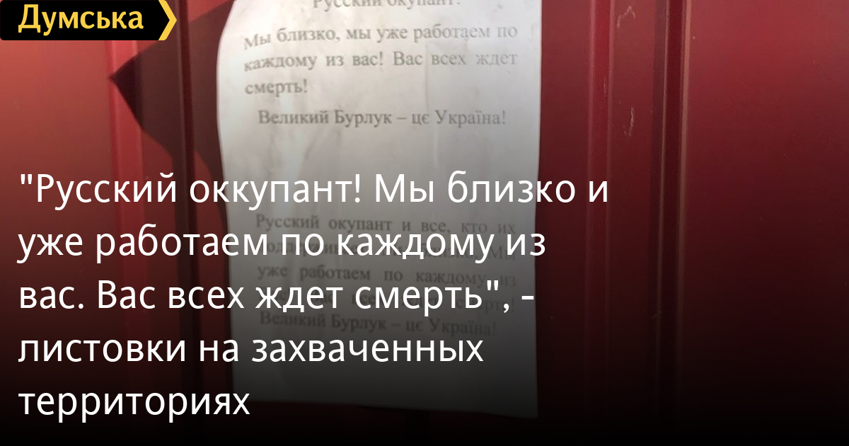 «Русский оккупант! Мы близко и уже работаем по каждому из вас. Вас всех ждет смерть» — такие листовки массово расклеили по временно оккупированному пгт Великий Бурлук.