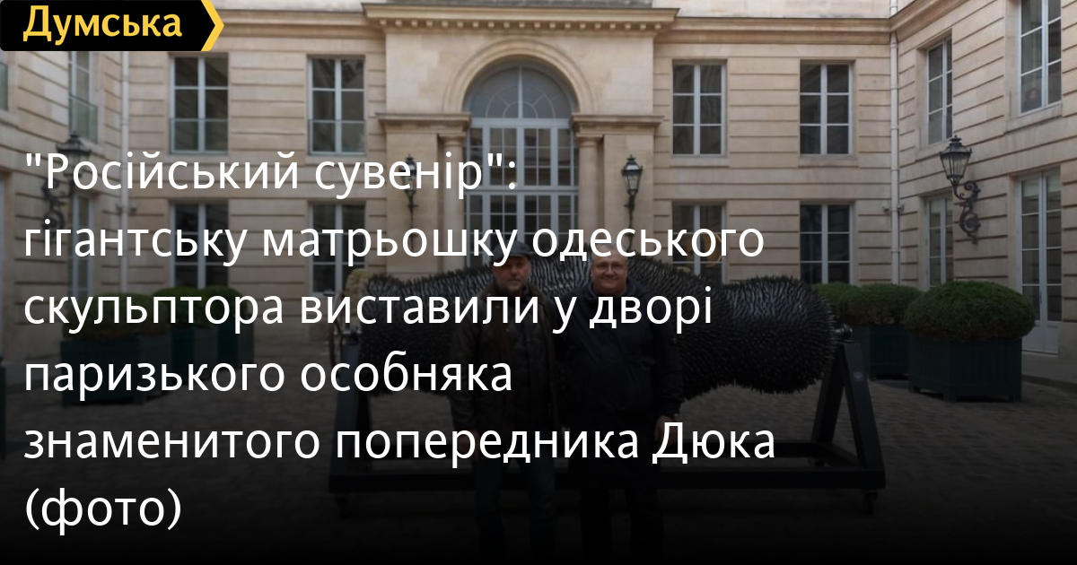 Як повідомив автор супровідних текстів до скульптур, професор Київського національного університету імені Тараса Шевченка Вахтанг Кабуладзе, йдеться про інсталяцію «Російський сувенір», про яку вже розповідала «Думська».