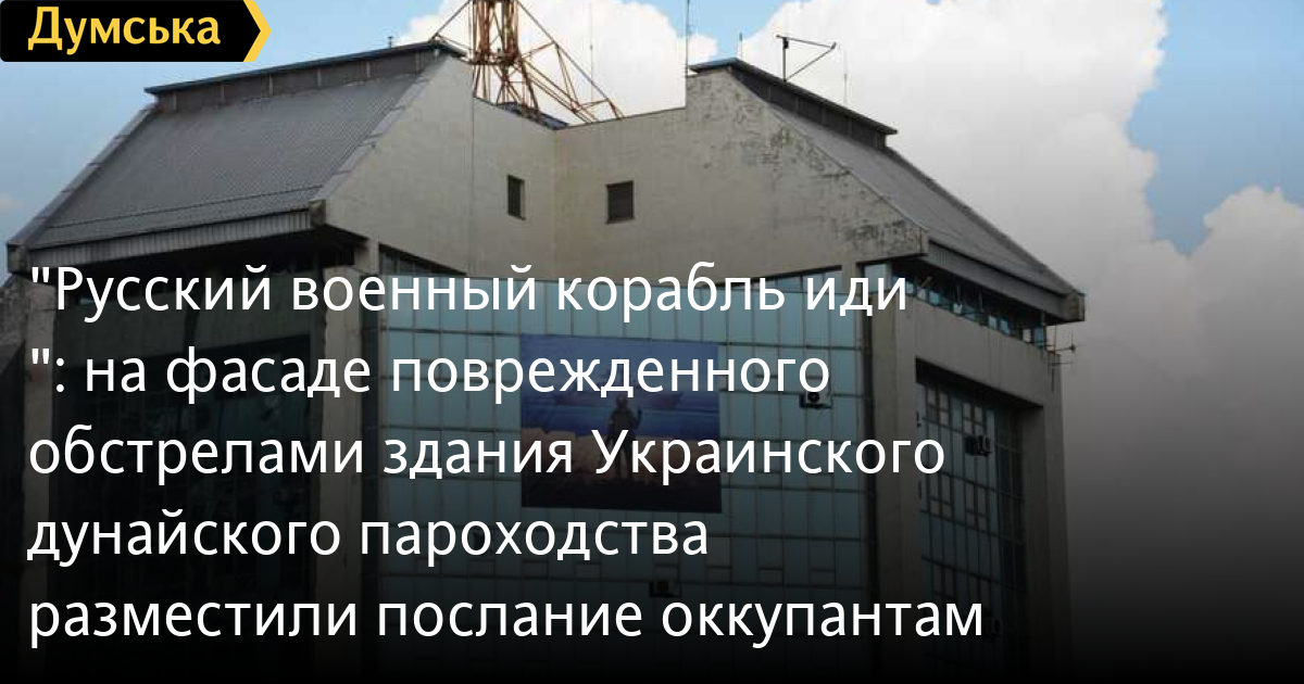 «Русский военный корабль иди »: на фасаде поврежденного обстрелами здания Украинского дунайского пароходства разместили послание оккупантамСимволическим баннером «Русский военный корабль иди » украсили административное здание Украинского дунайского пароходства, поврежденное во время ударов по Измаилу. Об этом сообщил генеральный директор УДП Дмитрий Москаленко. «Враг пытался запугать нас, заблокировать и остановить работу дунайского логистического кластера. Но мы выдержали, стали еще сильнее и еще более упорными. Наш ответ агрессору — баннер на фасаде разбитого здания УДП с легендарным рисунком украинского художника Бориса Гроха. Рашисты могут разбить наш офис, но им никогда не покорить нашу волю, не забрать нашу свободу и нашу страну», — отметил Москаленко. Напомним, российские оккупанты нанесли удары дронами по измаильскому порту ночью 2 августа. Повреждены элеватор, зерновые ангары, резервуары одного из грузовых терминалов, производственные, складские и административные постройки. СМЕРТЬ РОССИЙСКИМ ОККУПАНТАМ! Заметили ошибку? Выделяйте слова с ошибкой и нажимайте control-enter |