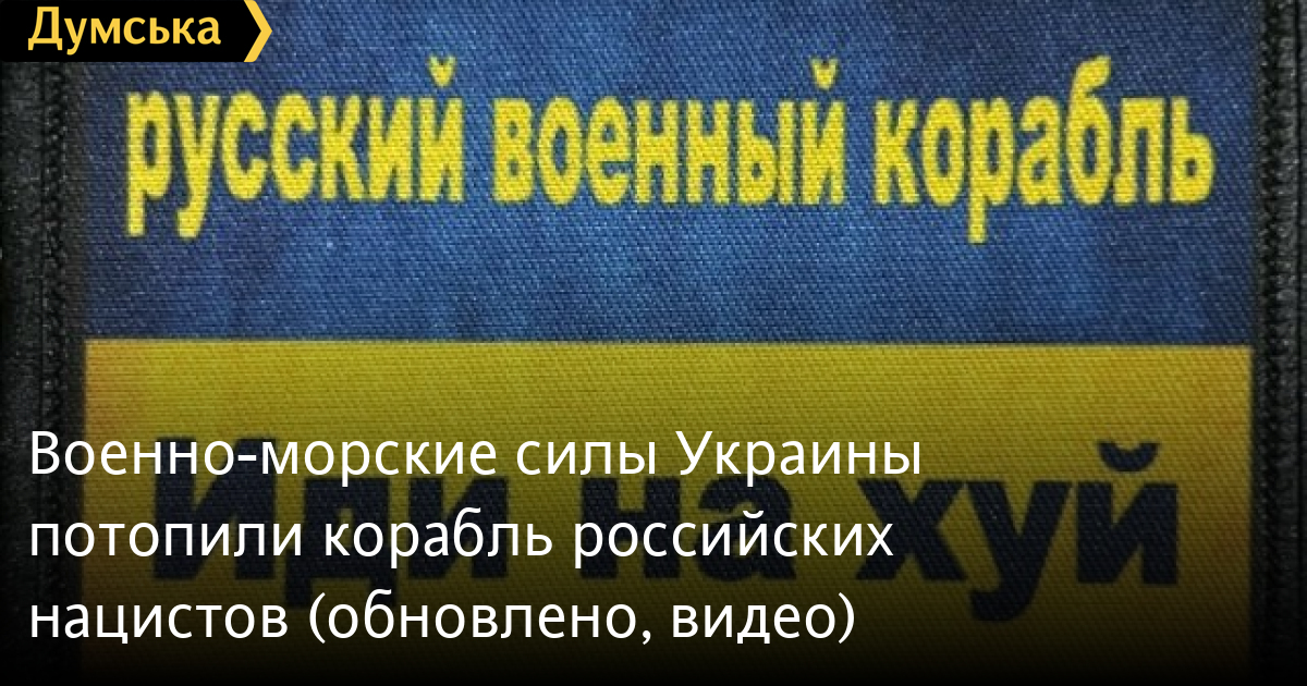 Военно-морские силы Украины потопили корабль российских нацистов.
