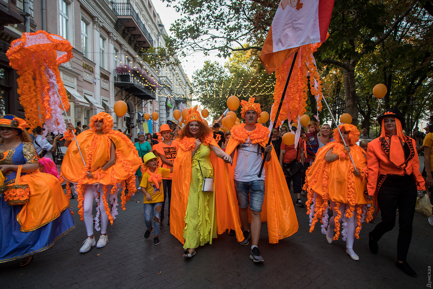 Около 500 рыжих и конопатых участников собрал сегодня четвертый ежегодный фестиваль «Одесса — рыжий город». Яркий марш огненноволосых стартовал от памятника Дюку де Ришелье. Здесь всем желающим рисовали дополнительные веснушки, а детей угощали бесплатным мороженным. Можно было приобрести атрибутику фестиваля: футболки с логотипом продавали за 100 гривен, а браслеты — за 10. Интересно, что одним из участников шествия стал рыжий кот по кличке Патрик. Во главе колонны шли участники в костюмах медуз. Как рассказала «Думской» организатор фестиваля Наталья Делиева, в этом году парад рыжих решили проводить без большого шума в виду совпадения даты с Днем памяти погибших за суверенитет и целостность Украины. «В этом году у нас почти 100 настоящих рыжих, а тех, кто рыжий только в душе, еще больше, — поделилась клоунесса. — К нам приехало очень много рыжих из других городов, а в следующем году мы отправляем нашу делегацию в Голландию на их фестиваль». Конченой точкой маршрута парада стал Городской сад. На сцене Летнего театра прошел концерт и выступление детских коллективов.