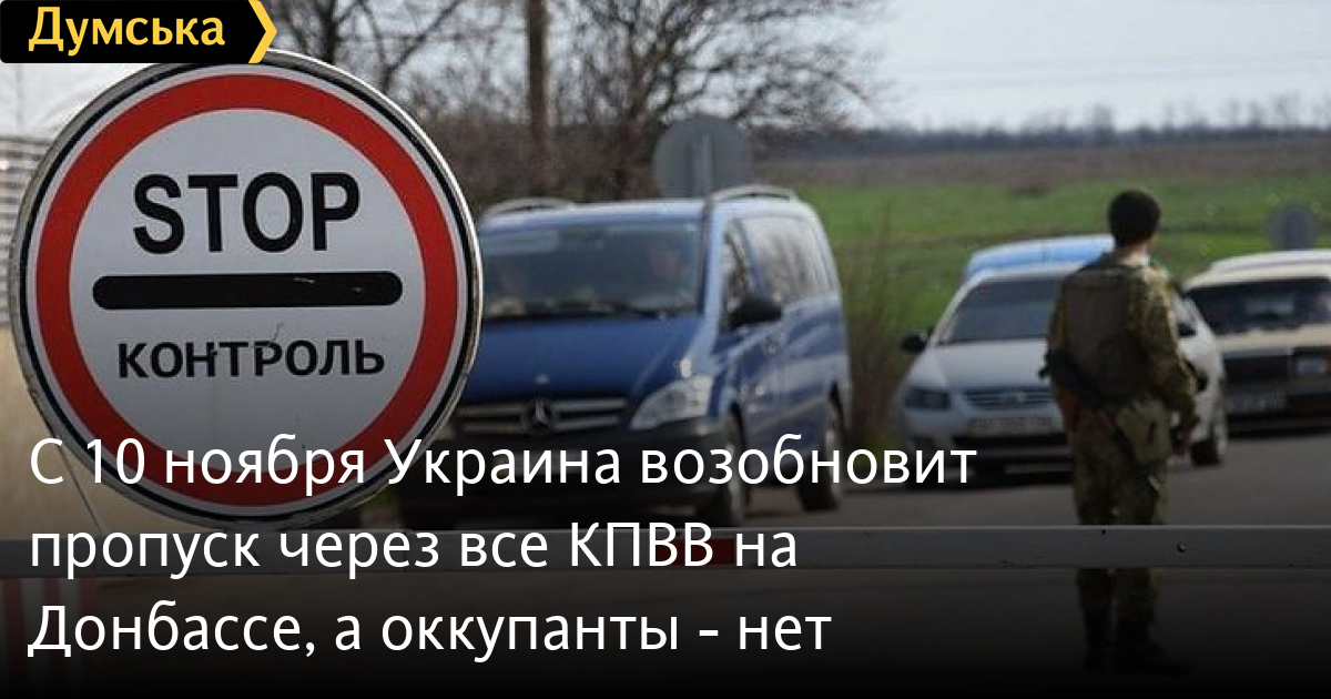 Решение вступит в силу с 8 утра 10 ноября. Пропуск граждан и транспортных средств будет проводиться ежедневно с 8:00 до 18:00: на территории Донецкой области — через КПВВ «Гнутово», «Новотроицкое», «Марьинка», «Майорское», а на Луганщине — через КПВВ «Станица Луганская» и новосозданные контрольные пункты въезда-выезда «Счастье» и «Золотое».