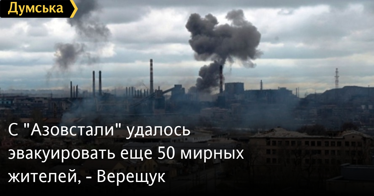 «На обратном пути должны были забрать людей на Порт Сити. К сожалению, не успели, потому что целый день колонна была вынуждена стоять возле «Азовстали». Там происходили бои и другие провокации. Враг постоянно нарушал режим прекращения огня. Поэтому эвакуация проходила крайне медленно. Однако сегодня нам удалось вытащить из «Азовстали» 50 женщин, детей и пожилых людей. Завтра утром мы продолжим эвакуационную операцию», — отметила Ирина Верещук.