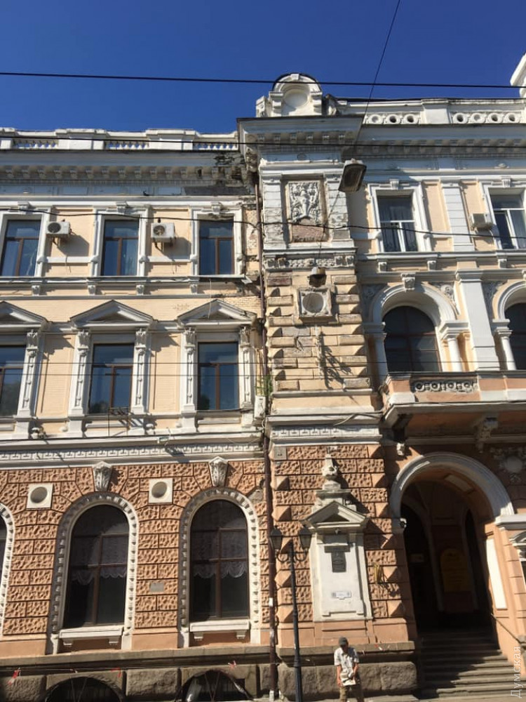 Фрагменты верхней части декоративных элементов фасада рано утром 12 июня рухнули со здания одесского Главпочтамта.