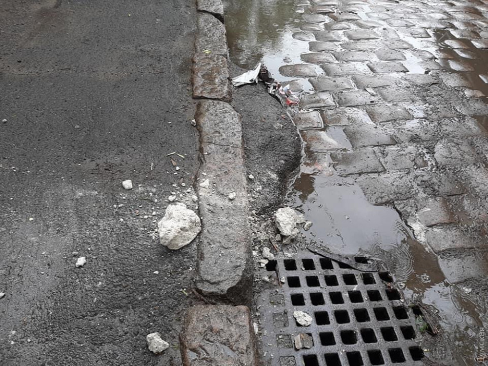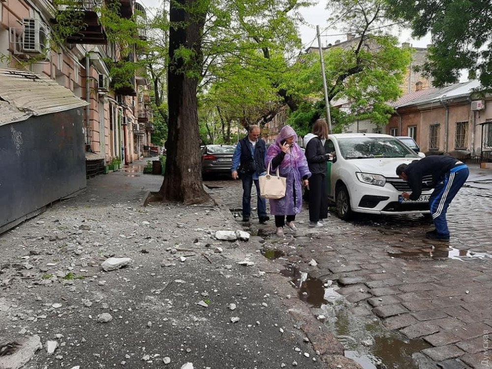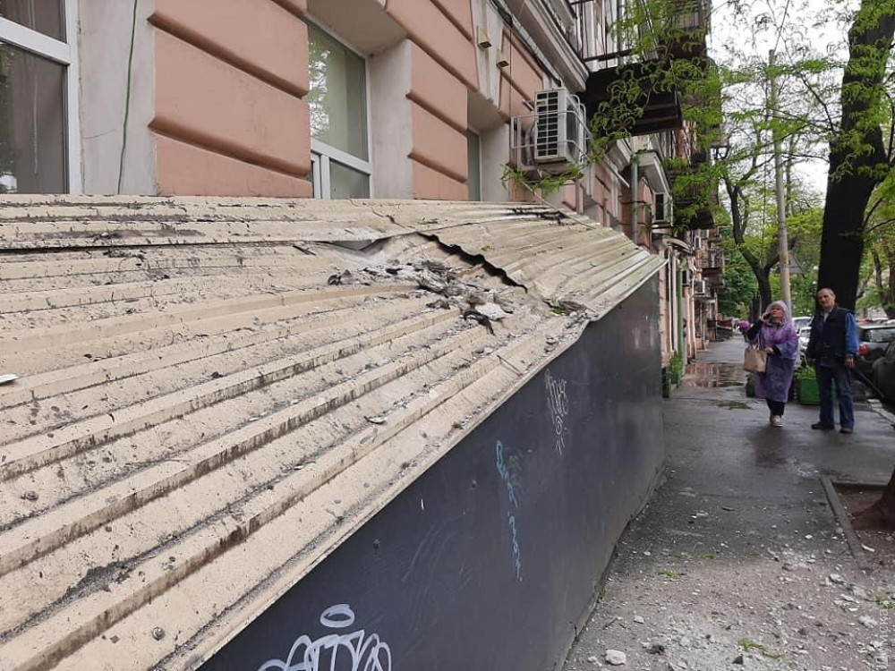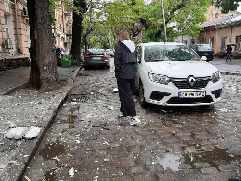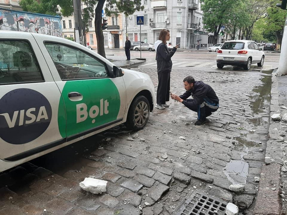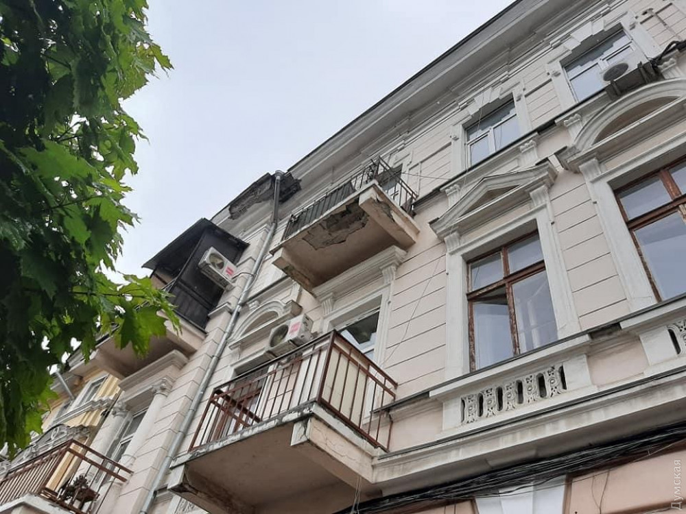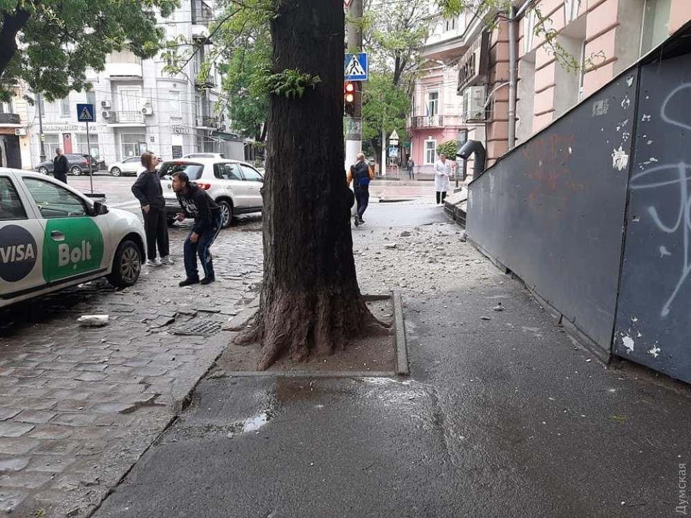Элементы фасада обрушились на тротуар у жилого дома на углу Тираспольской и Кузнечной в центре Одессы, недалеко от школы №58.