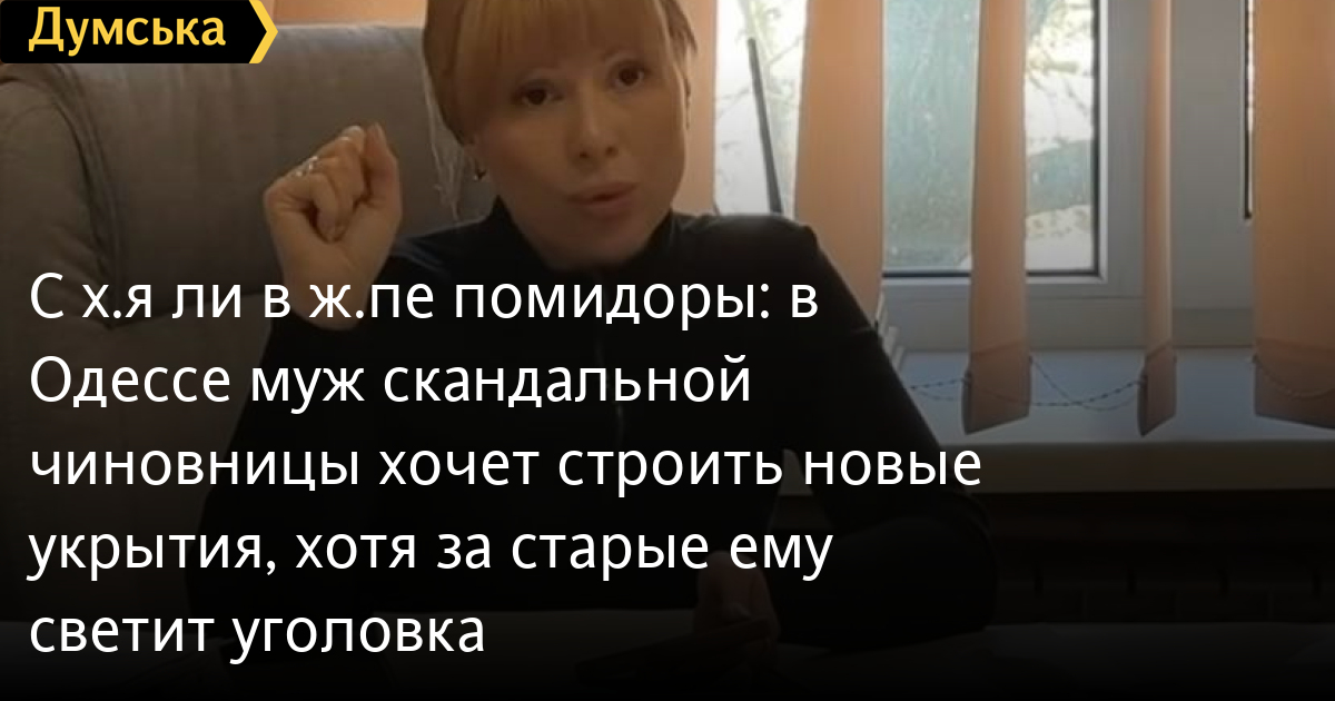«С х.я ли в ж.пе помидоры»: в Одессе муж скандальной чиновницы хочет строить новые укрытия, хотя за старые ему светит уголовкаМобильные укрытия на городских остановках хочет строить фирма мужа чиновницы департамента транспорта горсовета Елены Фокиной. Пока одесситы обсуждают лингвистические пируэты замдиректора, сама чиновница, похоже, занята куда более приземленными вещами — освоением бюджетных миллионов через семейный подряд. По данным источников «Думской», идет активная подготовка документов для участия в тендерах, несмотря на уголовный бэкграунд ранее взятых подрядов. Как сообщили наши собеседники в мэрии, в планах освоить как минимум еще 7 млн гривен, о чем сама Фокина неоднократно заявляла в приватных беседах. Фирма прошла процедуру переименования. Ранее она называлась «Рельянс Плюс». А теперь — «БЛ-Д»! Стоит отметить, что закон не запрещает использовать междометия в нейминге. Но, видимо, не только мы остались под впечатлением от словарного запаса Фокиной. В популярной соцсети даже появился целый стикерпак с ее цитатами.