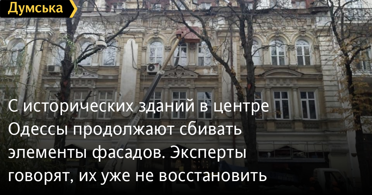 В центре Одессы продолжаются так называемые противоаварийные работы, в рамках которых с исторических зданий сбивают лепнину и части фасадов.