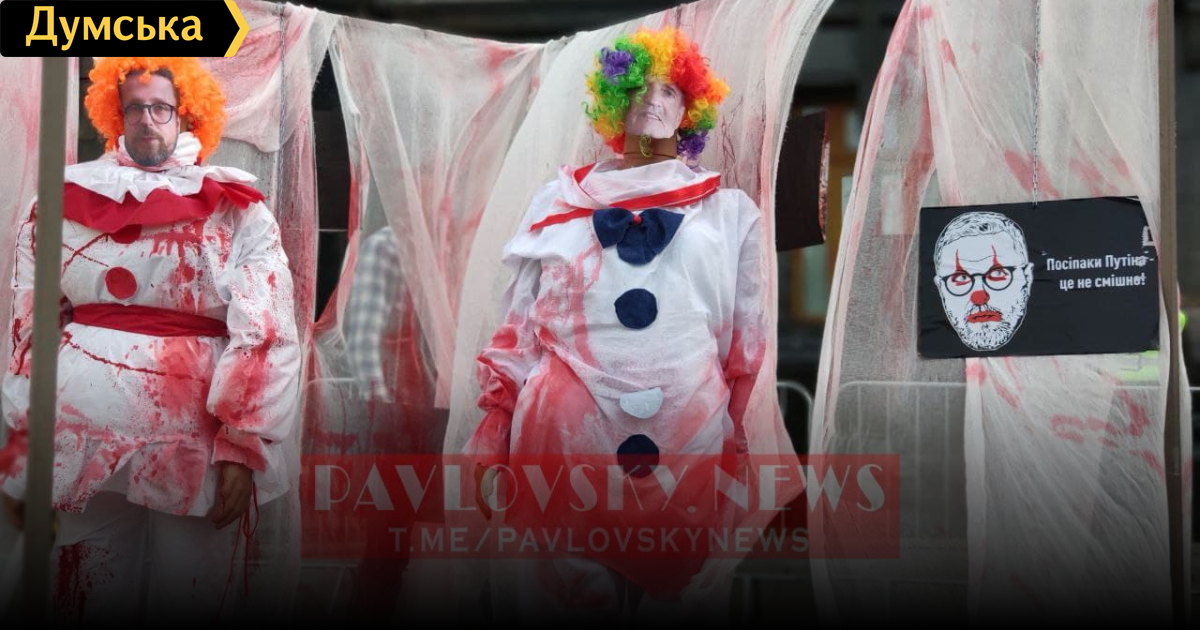 Активисты Нацкорпуса организовали перформанс против «пособников РФ» под стенами Офиса президента в Киеве. Об этом сообщила пресс-служба партии. На кадрах видна импровизированная «комната страха». Ее обустроили, развесив по периметру обрывки белой марли. Ткань намеренно испачкали красной краской, она символизирует пятна «крови патриотов Украины в ООС». Там же разместили манекены клоунов в белых одеяниях с такими же красными разводами. Клоунам «приделали» лица лидера «ОПЗЖ» Виктора Медведчука, его супруги, ведущей Оксаны Марченко, соратников Ильи Кивы и Вадима Рабиновича, а также подозреваемого в госизмене политика, блогера-пропагандиста Анатолия Шария. Организаторы акции жгли файеры и призывали судить изменщиков родины. Они принесли плакаты с надписями «Посипаки Путина – это не смешно». Глава киевского отделения Нацкорпуса Сергей Тамарин заявил, что у них считают этих деятелей коллаборантами, причастными к войне и массовой гибели украинских военных на востоке страны. Напомним, ранее мы писали, что США привела войска в Европе в максимальную боеготовность из-за стягивания сил РФ к украинским границам. Фото — Pavlovskynews СМЕРТЬ РОСІЙСЬКИМ ОКУПАНТАМ! Помітили помилку? Виділяйте слова з помилкою та натискайте control-enter |