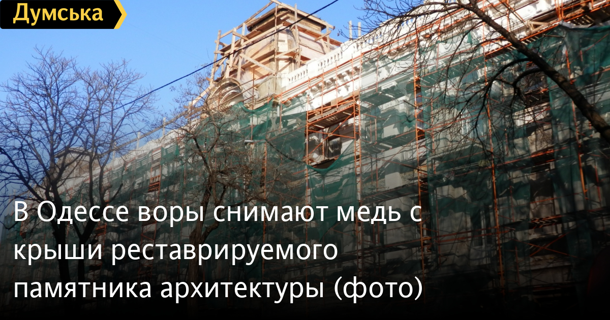 Реставрируемый памятник архитектуры — дом первого российского страхового общества «Жизнь», что на углу Елисаветинской (Щепкина) и Преображенской улиц, - попал в поле зрение охотников за цветными металлами. Воры сняли с крыши исторического здания 100 квадратных метров меди стоимостью более 100 тыс. грн.