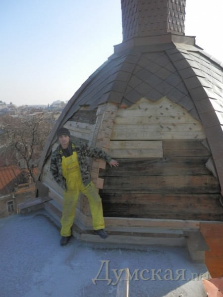 Преступники, скорее всего, попадают на крышу по строительным лесам. Но снять последние реставраторы не могут — это обойдется минимум в полмиллиона гривен.