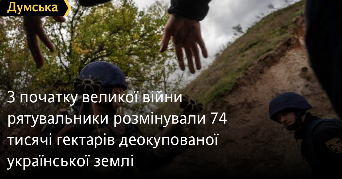 74 тисячі гектарів розмінували українські рятувальники від початку повномасштабного вторгнення росії.