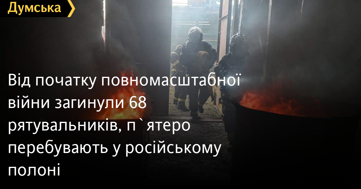 68 співробітників Державної служби України з надзвичайних ситуацій загинули з початку повномасштабної війни, п'ятеро рятувальників перебувають у ворожому полоні.