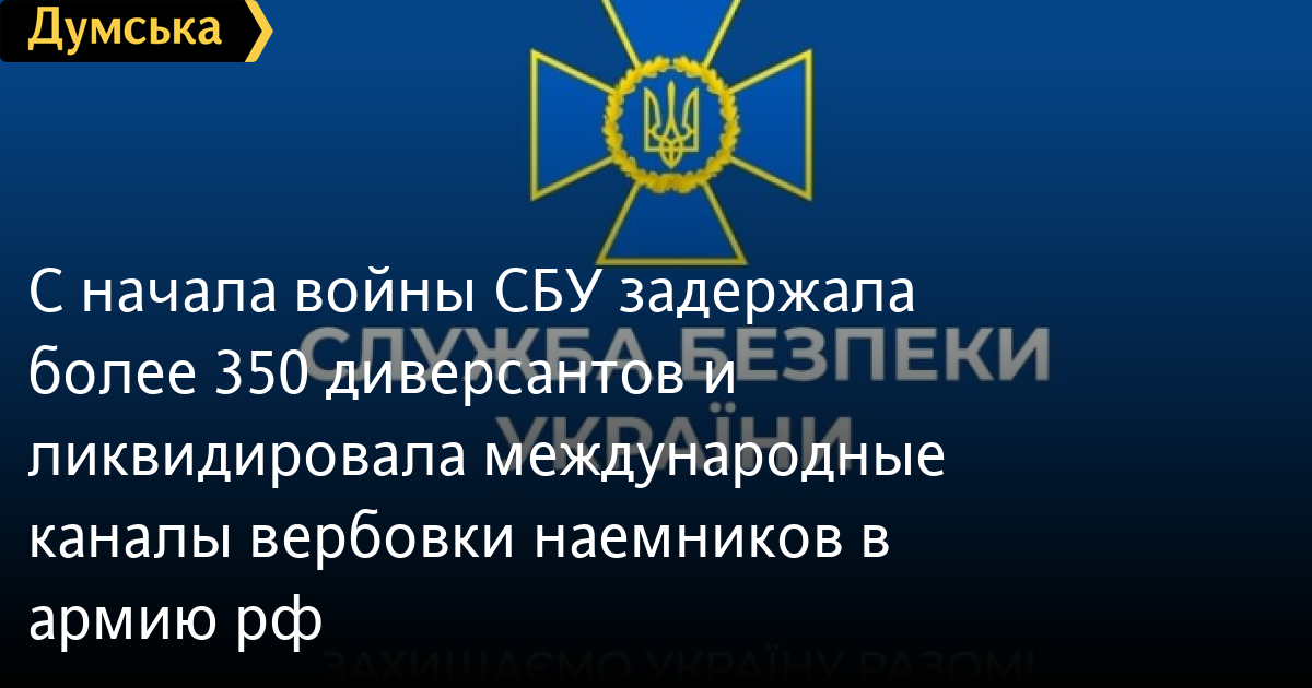 С начала полномасштабного вторжения ликвидировано свыше 20 ДРГ, а более 350 их участников – задержаны, сообщают в Службе безопасности Украины.