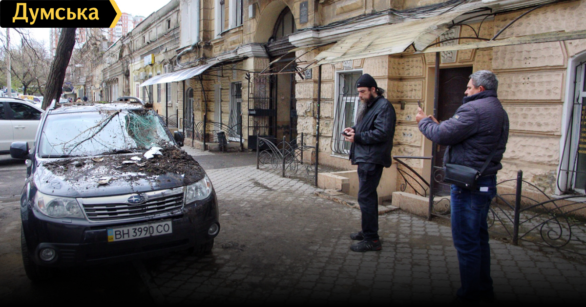 С памятника архитектуры на Базарной рухнул уже третий балкон: поврежден автомобиль