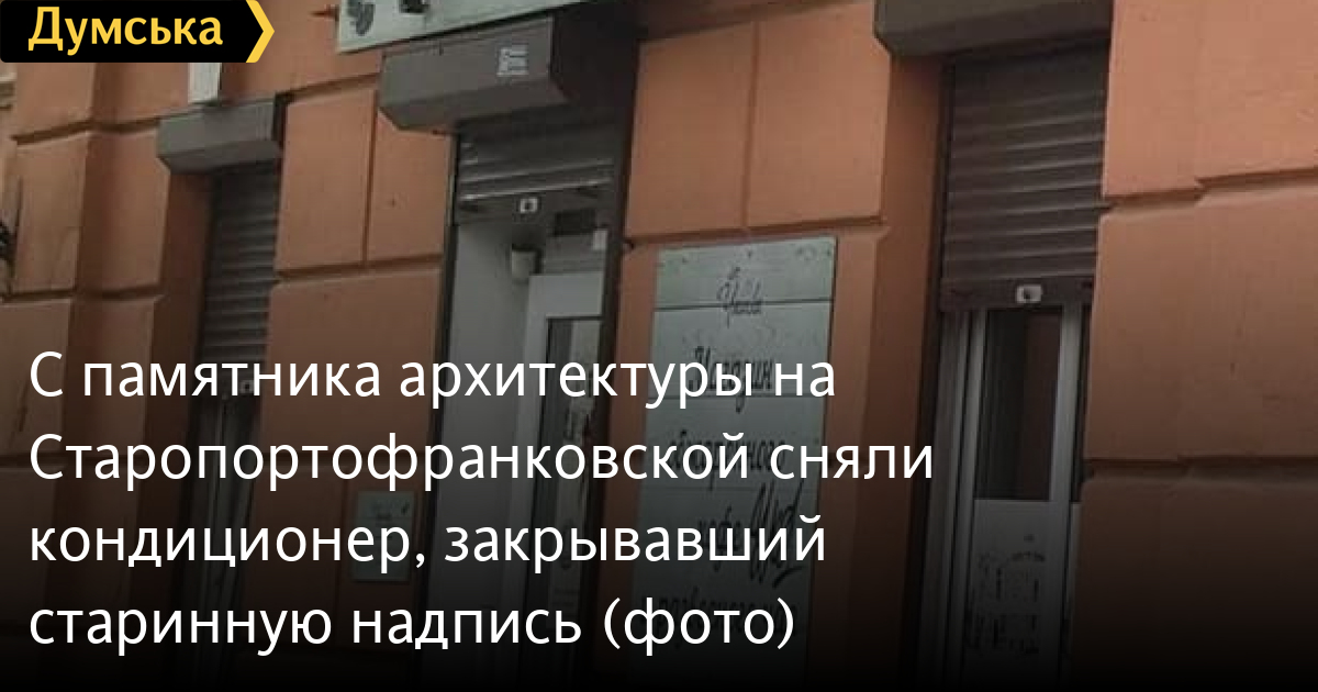 Арендаторы помещения, расположенного на первом этаже памятника архитектуры по адресу Старопортофранковская, 30, сняли кондиционер, который закрывал оставшуюся на фасаде старинную надпись конца ХІХ века.