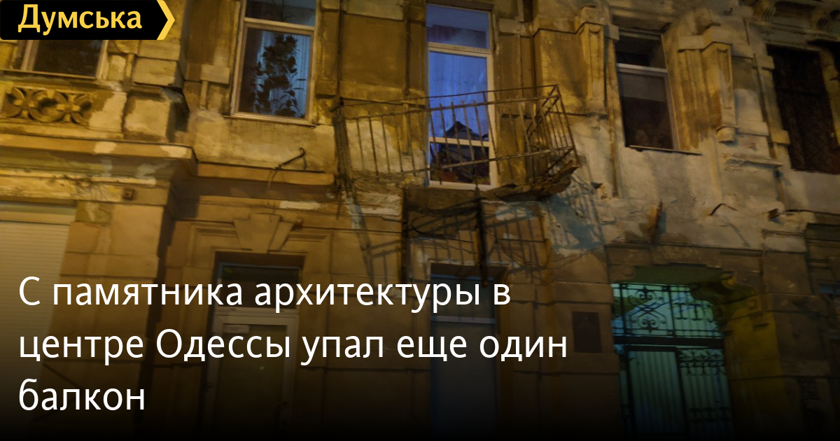 Обрушение балкона с фасада памятника архитектуры местного значения на улице Большой Арнаутской, 24 произошло сегодня вечером.